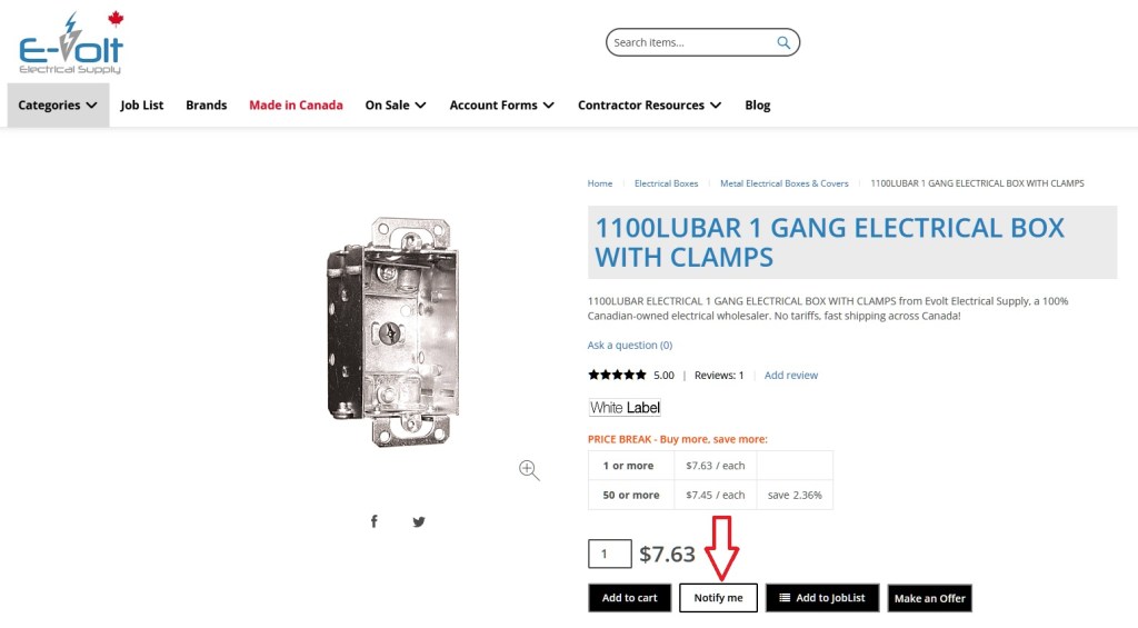 In the fast-paced world of electrical contracting, time is money. That’s why Evolt Electrical Supply now offers a seamless notification system directly on all product pages. Whether you’re a registered user or just browsing, simply enter your email, and we’ll handle the rest. No more constantly checking back or missing out on critical tools and materials. You’ll receive an automatic email the moment stock is replenished or a price drops to your target amount.